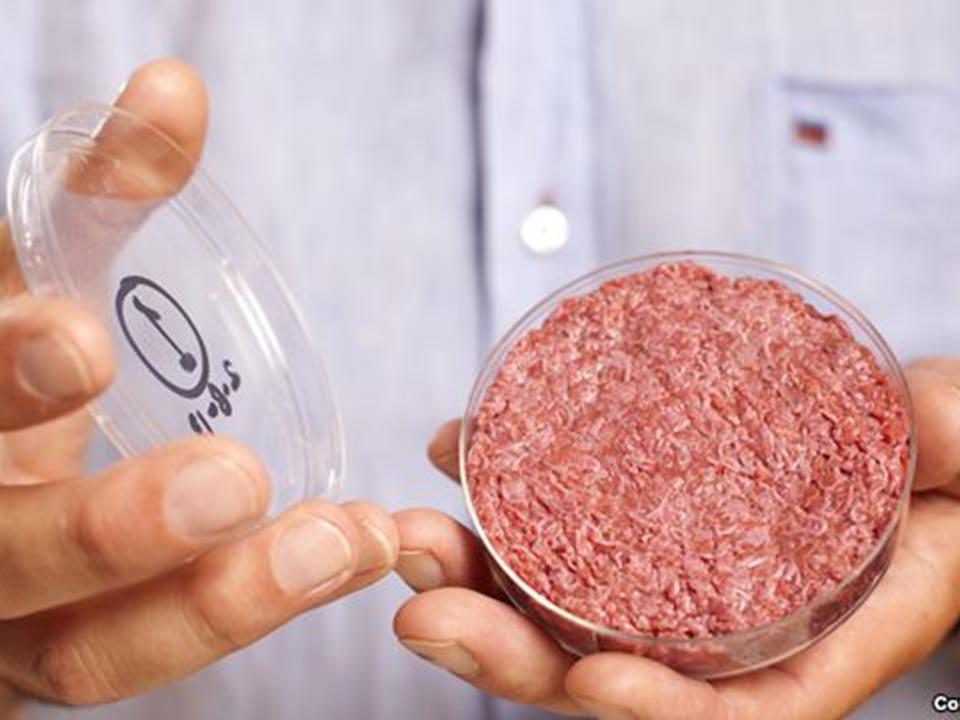 Các nhà khoa học hy vọng thịt làm trong phòng thí nghiệm trong tương lai sẽ làm nhẹ bớt nạn khan hiếm thực phẩm và giảm bớt loại khí gây hiệu ứng nhà kiếng do việc sản xuất thịt gây ra.