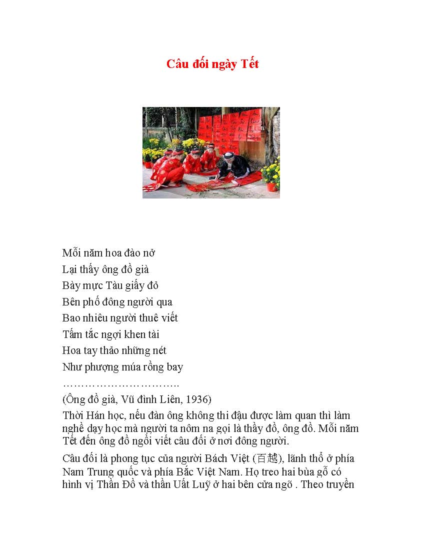 Thời Hán học, nếu đàn ông không thi đậu được làm quan thì làm nghề dạy học mà người ta nôm na gọi là thầy đồ, ông đồ. Mỗi năm Tết đến ông đồ ngồi viết câu đối ở nơi đông người.