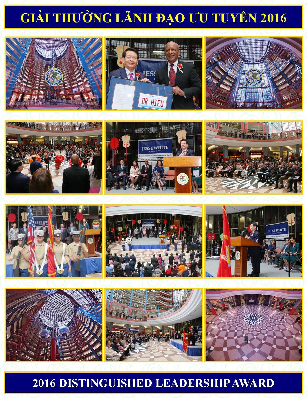 Chicago (11/05/2016) - Hon. Jesse White, Bộ Trưởng Bộ Nội Vụ đã đến chủ tọa Lễ hội Truyền thống Văn Hóa Á Châu và trao bằng tưởng thưởng “Lãnh Đạo Ưu Tuyển” cho Huynh Trưởng Nghĩa Sinh, một nhà giáo người Việt dạy học trên 43 tại Chicago. Nghi lễ trao giải thưởng được tổ chức ngày 11/05/2016 tại Trung tâm Thống đốc James Thompson Center Chicago.