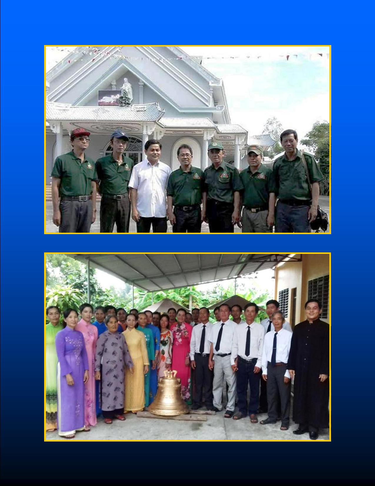 Hình trên: Đại diện Đoàn CTXH Nghĩa Sinh Saigon, Phan Thiết và Phước Tuy trao tặng bộ chuông Kiên Lao (tỉnh Nam Định) đến Cha Quản xứ và BCH Giáo xứ.
