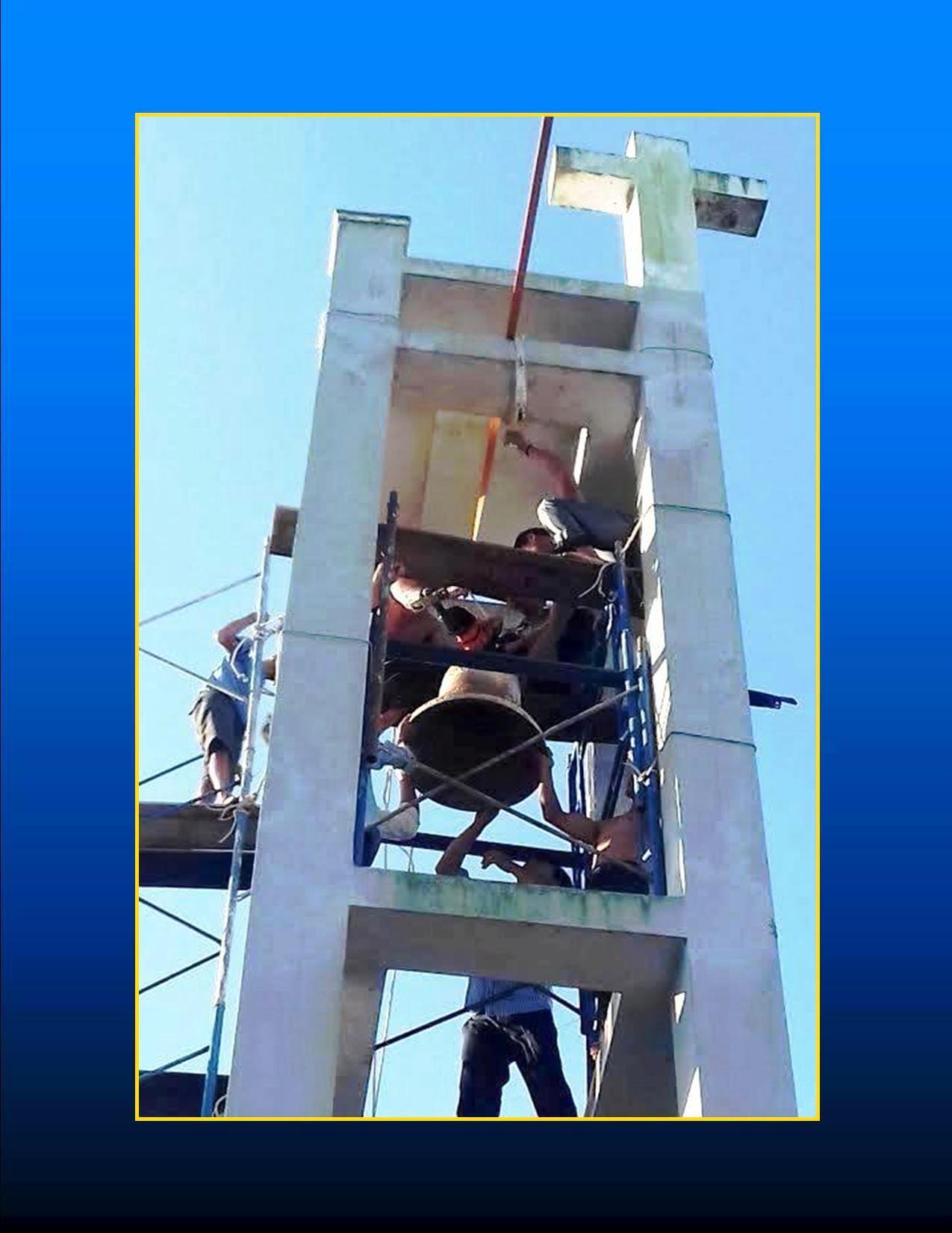 Hình trên: Sau khi được Cha Quản xứ làm phép, bộ chuông được giáo xứ hiến kính Đức Mẹ.