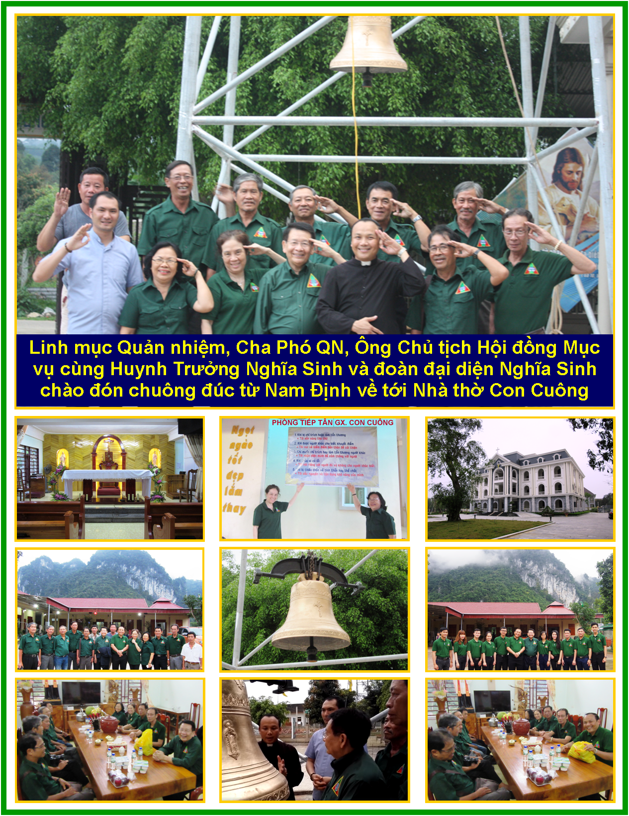 Được biết ngày 21/03/2019 vừa qua, Cha Quản nhiệm đã đích thân vào Saigon để chào thăm Nghĩa Sinh và trao tặng Bằng Tri ân cho Đoàn Công tác Xã hội Nghĩa Sinh trong công tác hỗ trợ tài chánh và hoàn thành tốt đẹp việc đúc chuông tại Nam Định và chuyên chở chuông về Nhà thờ Con Cuông tại thôn Trung Thành, xã Yên Khê, huyện Con Cuông, tỉnh Nghệ An. Trong dịp nầy, giáo sĩ và giáo dân GHĐL Con Cuông đã vinh hạnh chào đón Đức Cha Phêrô Nguyễn Văn Viên đến làm phép chuông và dâng thánh lễ tạ ơn trong ngày trọng đại nầy.
