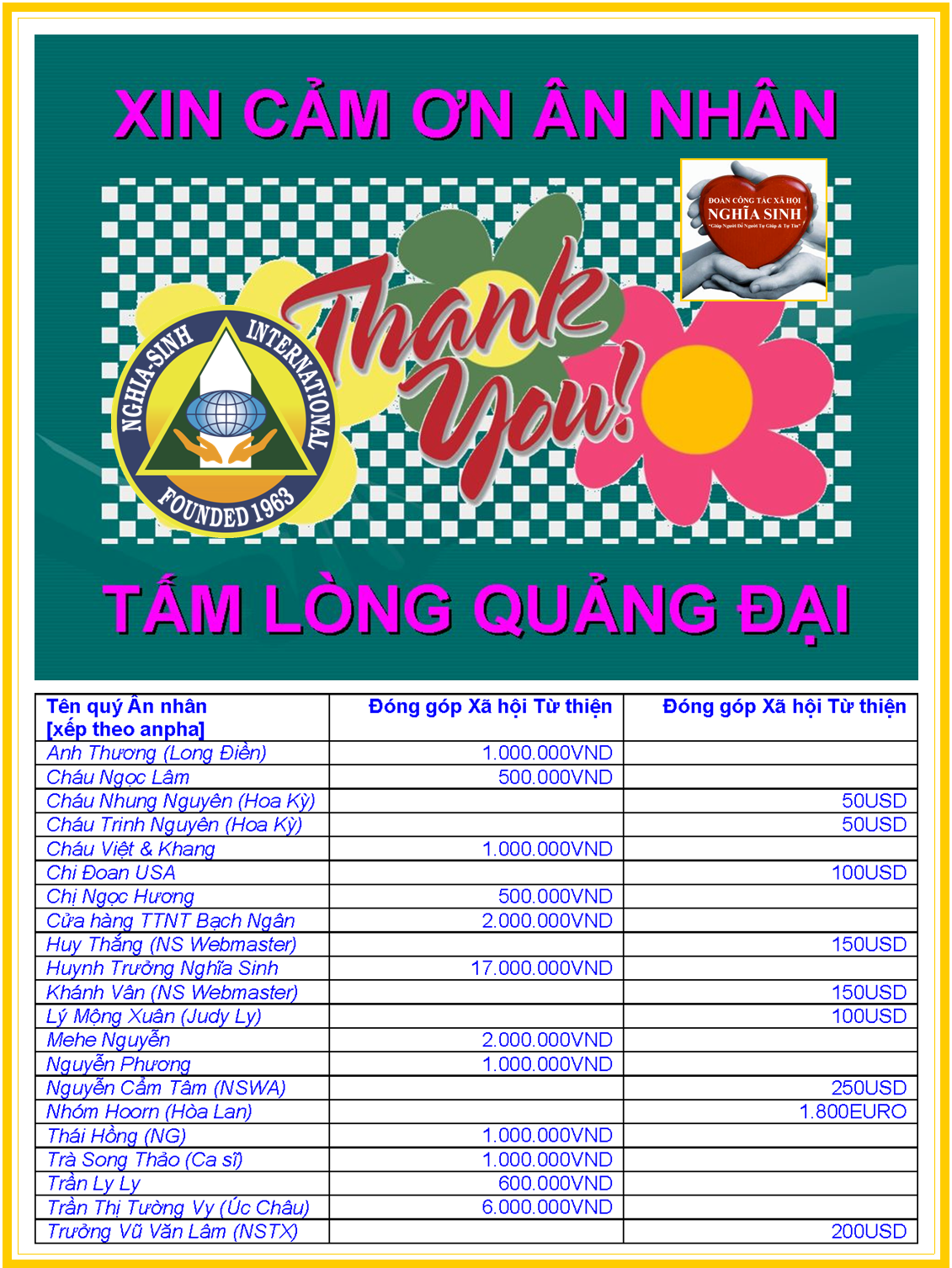Cảm ơn Cha Quản nhiệm đã làm gương sáng cho anh chị em Nghĩa Sinh về cung cách thể hiện lòng biết ơn. Vì lòng biết ơn biến năng lượng tiêu cực thành năng lượng tích cực như nữ sĩ Melody Beattie đã chia sẻ, “Không có tình huống hay hoàn cảnh nào quá nhỏ hay quá lớn đến mức nó không thể bị ảnh hưởng bởi sức mạnh của lòng biết ơn. Chúng ta có thể bắt đầu với con người chúng ta và những gì chúng ta có ngày hôm nay, hãy áp dụng lòng biết ơn và để lòng biết ơn đó làm những điều kỳ diệu của nó sau đó.”
