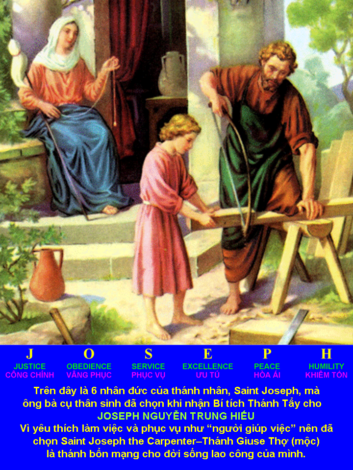 Xin chân thành cảm ơn quý anh chị NS và CNS tại Việt Nam và ở hải ngoại đã có lời chúc mừng và cầu nguyện cho anh nhân lễ bổn mạng Saint Joseph the Carpenter [Thánh Giuse Thợ (mộc)] được cử hành mỗi năm vào ngày 1 tháng 5.
