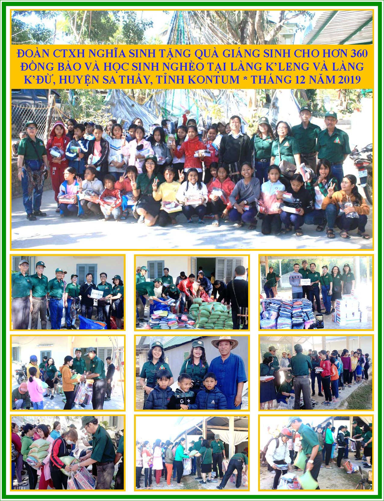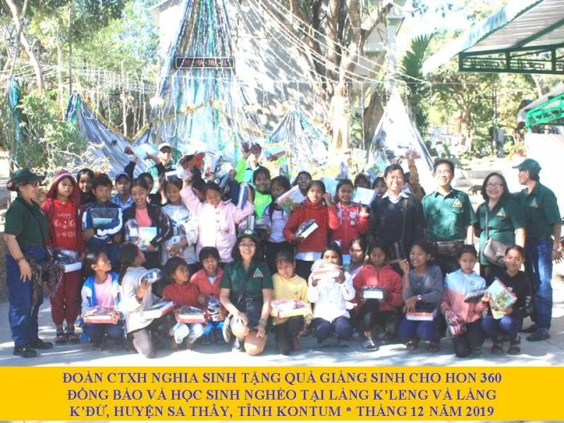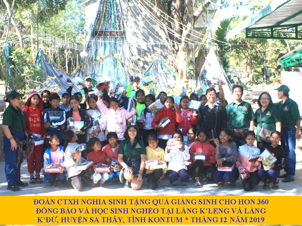 Nhân mùa Giáng Sinh 2019, Đoàn Công tác Xã hội Nghĩa Sinh đã đến huyện Sa Thầy thuộc tỉnh Kontum để chia sẻ với bà con người dân tộc làng K’Leng và làng K’Đừ. Các thành viên Đoàn CTXH vượt trên 775 cây số đường xe từ Phan Thiết, Phước Tuy và Sài Gòn để tới tận vùng Tây Nguyên Kontum trao quà Noel cho đồng bào nghèo và các em học sinh người dân tộc ở vùng sâu vùng xa là làng K’Leng và thôn K’Đừ thuộc huyện Sa Thầy.
