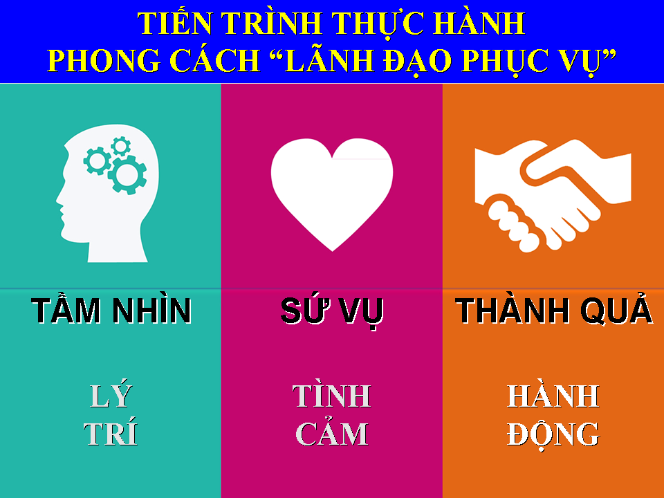 Đức Hồng Y (ĐHY) đã chăm chú đọc những lời diễn giải về lãnh đạo phục vụ được trích dẫn từ Kinh thánh và những đề tài thuyết trình liên quan đến nhân vị, nhân ái, nhân phẩm và nhân sinh. ĐHY rất hài lòng về sự tham gia sống động của quý tu sĩ và giáo dân trong việc giáo dục và đào tạo người lãnh đạo có tinh thần phục vụ. Ngài hân hoan chào thăm mọi người và ngỏ lời nhắc nhở các học viên rằng mọi việc làm của chúng ta được bắt đầu bằng “khối óc” giúp ta khám phá ra tầm nhìn, hành trình và đích điểm tiến tới. Ngài ân cần nhắc nhở các học viên hãy dùng “trái tim” làm nền tảng cho hành trình để tình yêu thương được tỏa rạng trong lòng và trên khuôn mặt của lữ khách. ĐHY giải thích thêm, đích điểm tiến tới sẽ không bao giờ trở thành hiện thực nếu như chúng ta không biết vận dụng “tứ chi” và toàn thân ta để hành động vươi tới chân-thiện-mỹ. Những lời giáo huấn của ĐHY có thể được tóm lược qua minh họa sau đây: