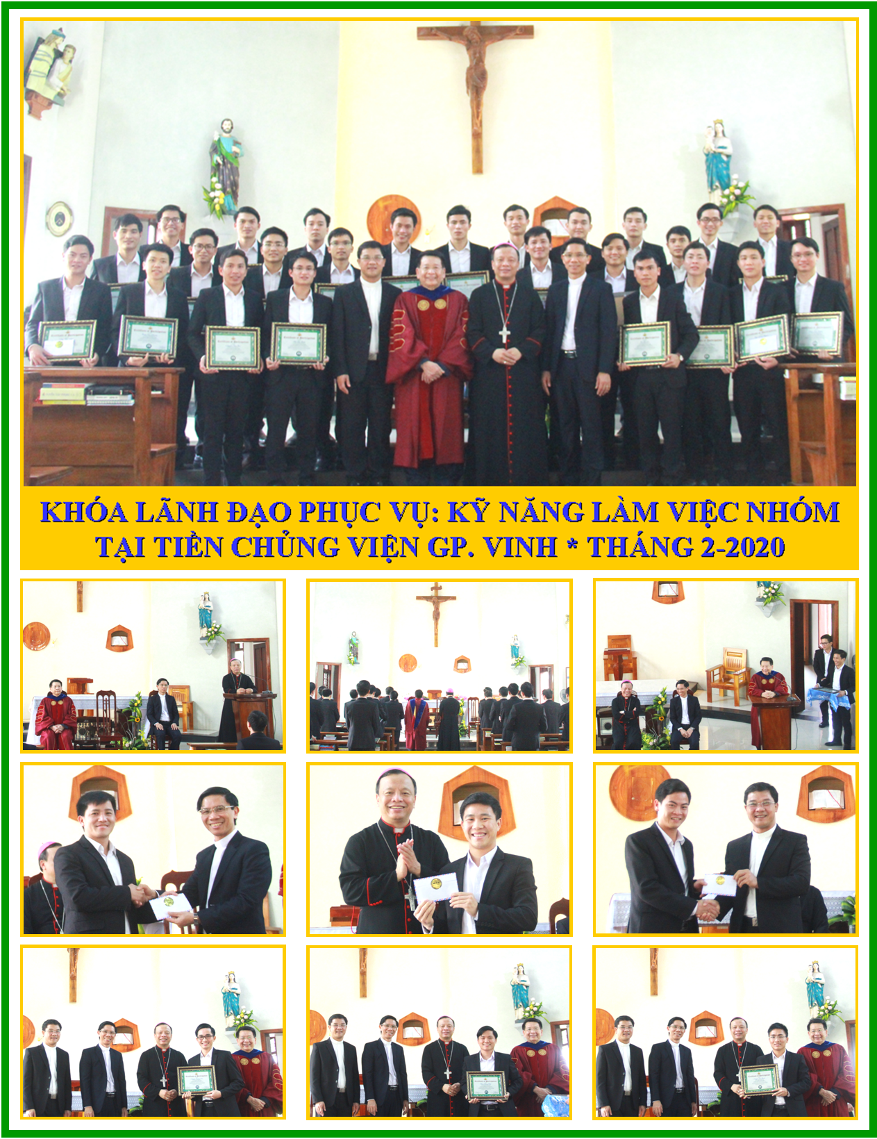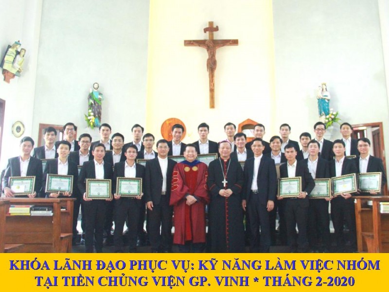 Khóa học về Kỹ năng Làm việc Nhóm tại Tiền Chủng Viện Xã Đoài đã diễn ra từ sáng ngày 10 đến chiều ngày 14 tháng 02 năm 2020. Trải qua 30 tiết học đầy sôi nổi, sinh động và vui tươi với giảng viên là Tiến sĩ Giuse Nguyễn Trung Hiếu. Trong khóa học nầy, các học viên đã thụ huấn được thêm nhiều kiến thức tân tiến, bổ ích và cần thiết cho sứ vụ mục tử trong tương lai. Ngoài những giờ học lý thuyết, các học viên còn có hơn 10 tiết để áp dụng lý thuyết vào thực hành. Đây là cơ hội để các chủng sinh thực tập làm việc theo 6 nhóm về nhiều đề tài liên quan đến kỹ năng làm việc nhóm. Qua đó, các thành viên trong mỗi nhóm đã nỗ lực phát huy khả năng của mình, cũng như vận dụng tốt những kiến thức đã được học để áp dụng cho bài thuyết trình của mỗi nhóm.Huấn từ của Đức Cha Phêrô trong Khóa Lãnh đạo Phục vụ bằng Kỹ năng Làm việc Nhóm do Huynh Trưởng Nghĩa Sinh hướng dẫn
