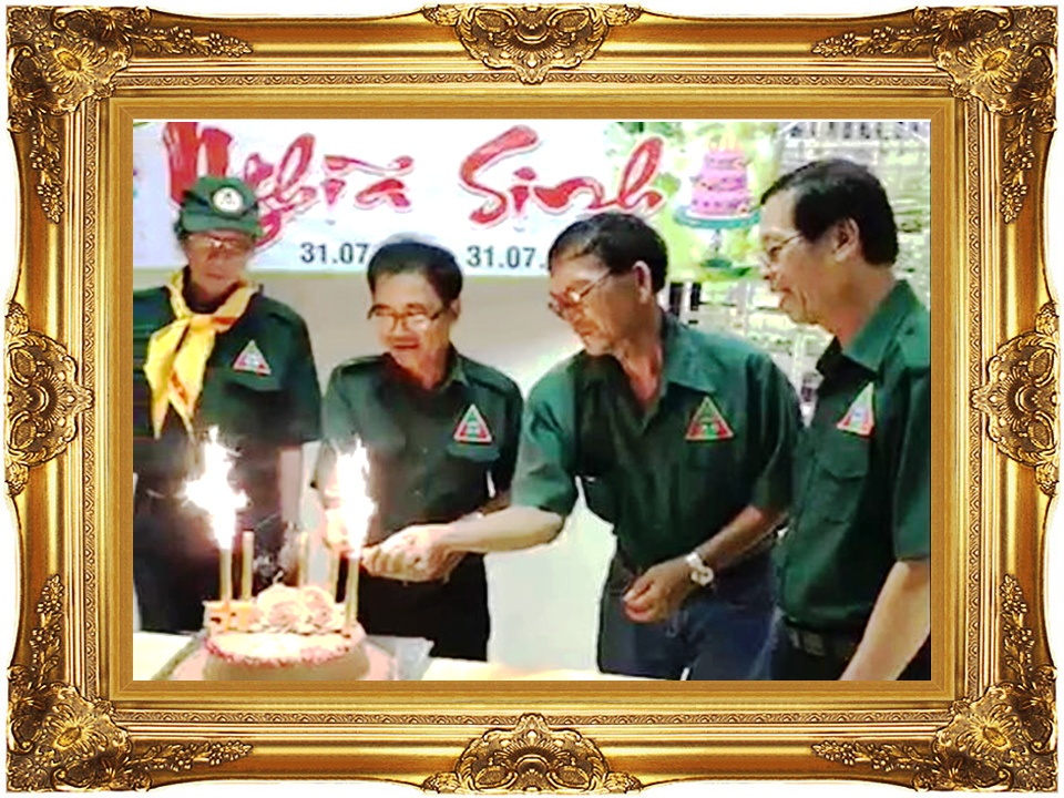 Hình trên: Đại diện Nghĩa Sinh Sài Gòn, Nghĩa Sinh Phước Tuy và Nghĩa Sinh Phan Thiết cắt bánh mừng Sinh nhật Nghĩa Sinh năm thứ 57 (1963-2020).