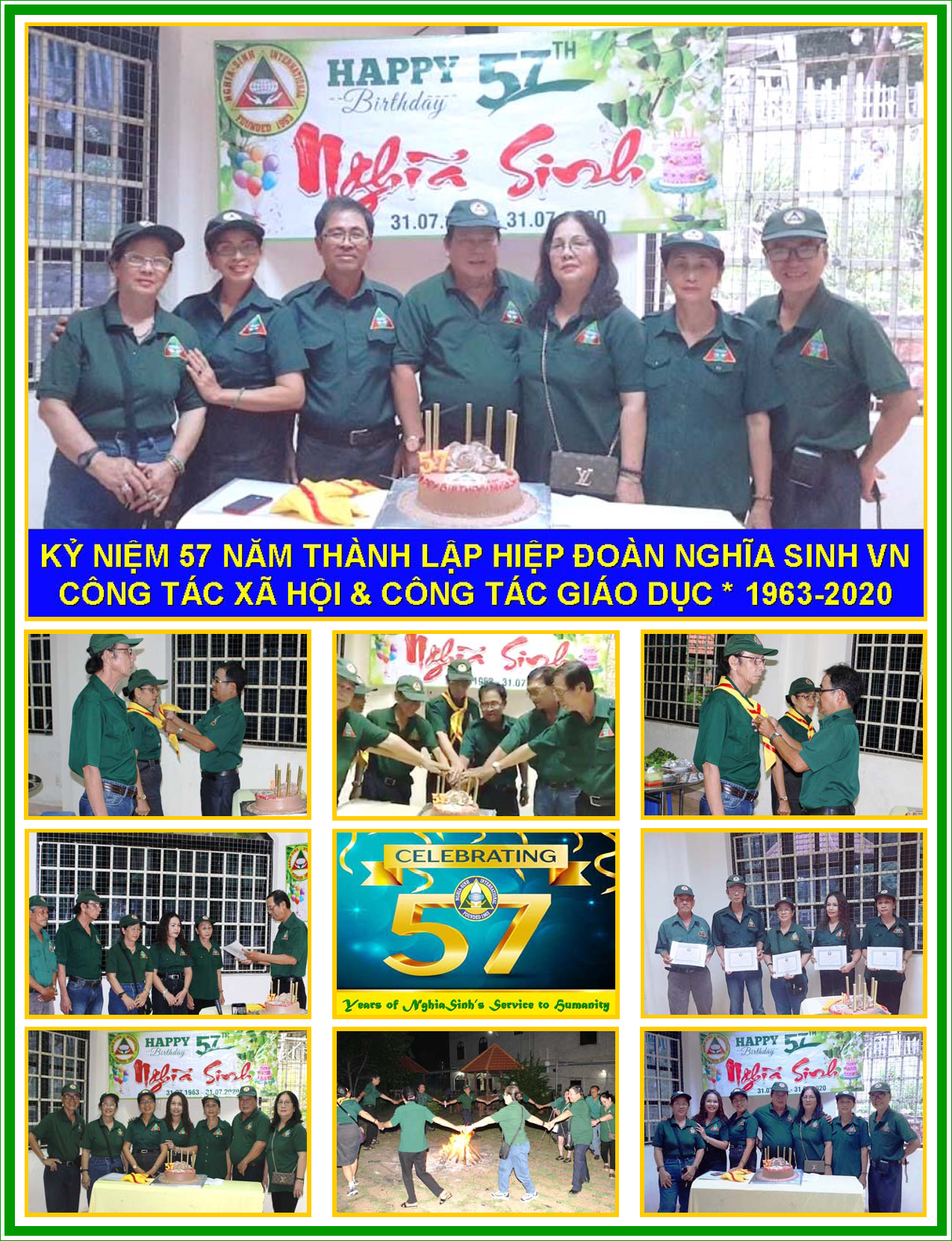 Hình trên: Kỷ niệm 57 năm Công tác Xã hội Từ thiện và Công tác Giáo dục Đào tạo của Hiệp đoàn Nghĩa Sinh VN (1963-2020).