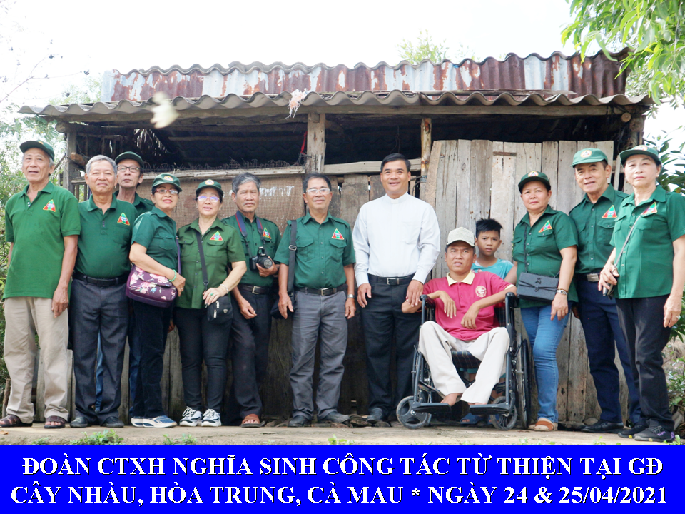 Có 12 đại diện Nghĩa Sinh CTXH – thuộc các Phương đoàn Nghĩa Sinh: Phước Tuy, Phan Thiết, Sài Gòn và Thủ Đức – đã tham gia chuyến công tác xã hội tại một tỉnh cực nam ở Miền Tây Nam Bộ trong hai ngày 24 và 25 tháng 4 năm 2021. Quý danh của các Trưởng và Nghĩa Sinh trong đoàn công tác gồm có (được xếp theo thứ tự ABC): NS Hoàng Văn Tám, NS Nguyễn Công Bình, NS Nguyễn Thị Đào, NS Nguyễn Thị Hiền, NS Nguyễn Văn Thu, NS Phạm Thu Loan, NS Xuân Lê, Trưởng Ngũ Phùng Vân, Trưởng Nguyễn Hồng Lam, Trưởng Nguyễn Thị Bích, Trưởng Nguyễn Văn Phẩm và Trưởng Nguyễn Xuân Thu.