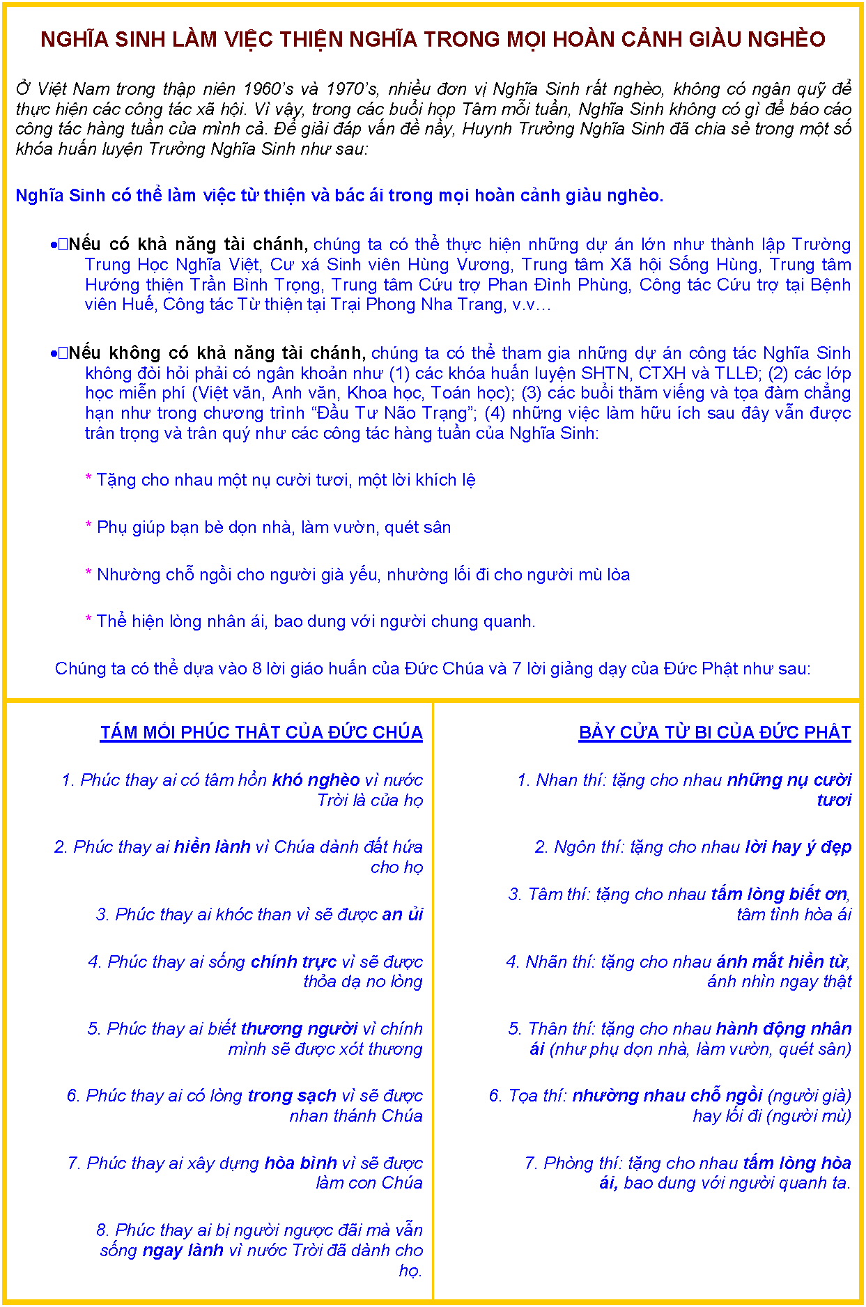 Huynh Trưởng Nghĩa Sinh đã nhân cơ hội nầy gửi lời cảm ơn đến các tham dự viên Đoàn CTXH Nghĩa Sinh đã hy sinh thời giờ quý báu để kiên trì tham gia các công tác thiện nghĩa trong niên hoạt 2020-2021 – từ việc giúp đỡ các em cô nhi bất hạnh đến việc hỗ trợ những người khuyết tật phục hồi thể xác và bồi dưỡng tâm linh; từ việc tiếp giúp phòng ngừa bệnh tật đến việc đúc chuông nhà thờ cho các xứ đạo nghèo; từ chương trình giếng nước sạch cho người nghèo đến chương trình máy lọc nước sông thành nước sạch cho các gia đình ở vùng sâu vùng xa.