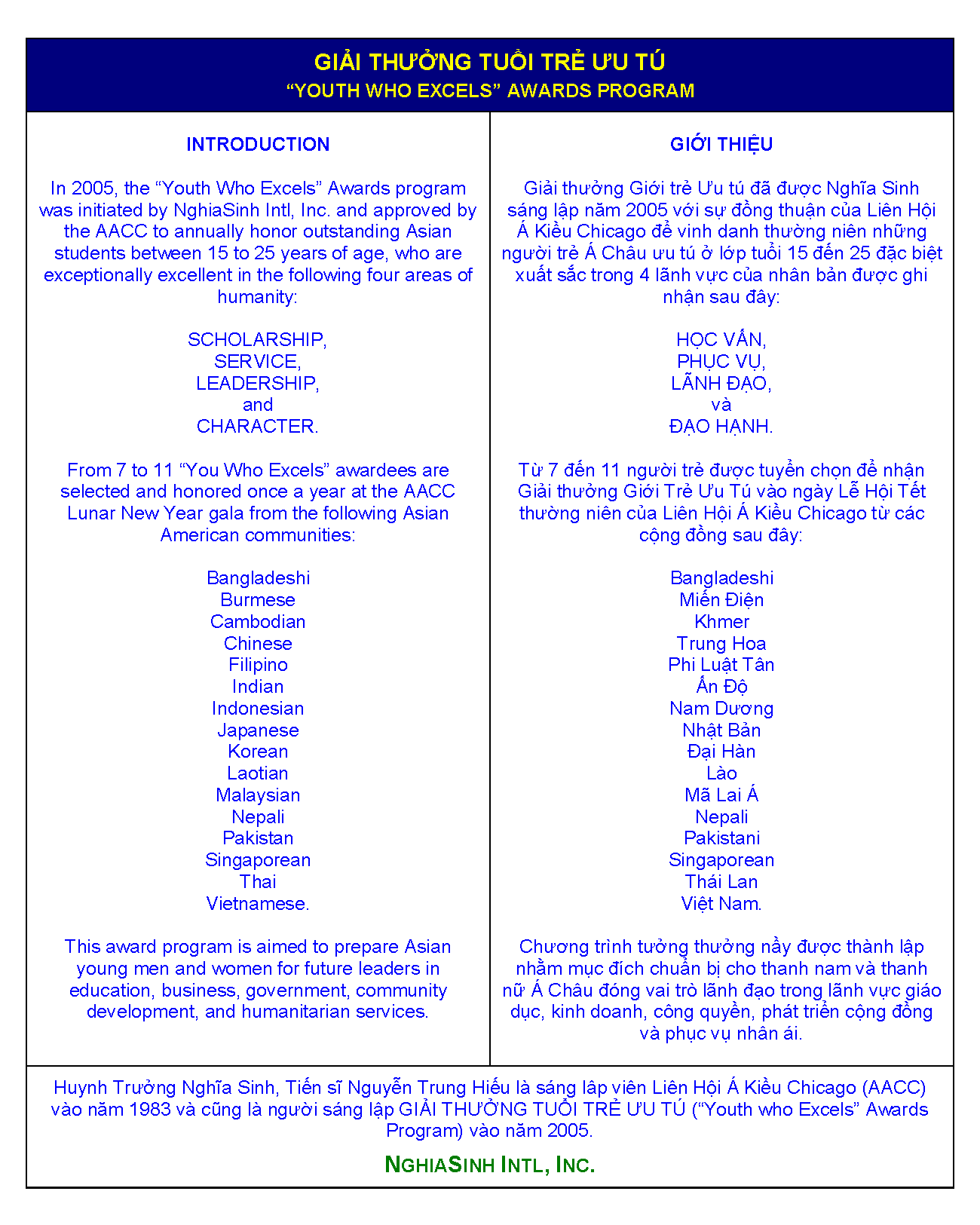 Youth Who Excels Awards * Giải thưởng Thanh Niên Ưu Tú